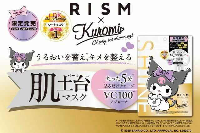 スキンケアブランドの「RISM(リズム)」から、サンリオの人気キャラクター「クロミ」とコラボした限定デザインのシートマスクが、2025年9月16日(火)からドン・キホーテ系列店舗限定で発売されるんです。